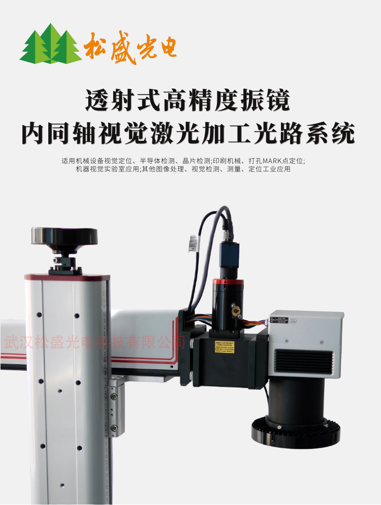 这是最高精度的集成方案。工业相机被直接安装在激光光路内部,通过一块对可见光高反射、对加工激光波长高透射的特殊镜片,将相机的视野与激光光束耦合后,共同通过振镜扫描头输出。这种结构保证了从相机传感器到工件表面的光路与激光光路完全一致,消除了所有因光路分离可能产生的视差和几何畸变。